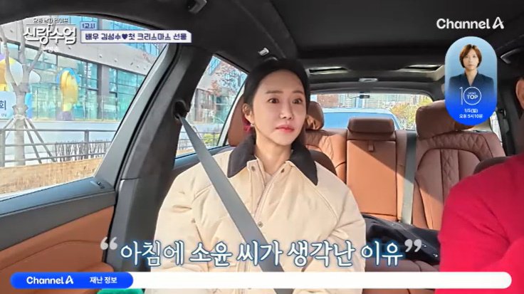 이때 박소윤이 등장했다. 김성수가 "여전히 예뻤다"라면서 속내를 고백했다. 두 사람이 이동하는 차 안에서 다소 긴장한 듯했다. 운전대를 잡은 김성수가 출발한 지 20초 만에 경로 이탈해 웃음을 샀다. 그가 "같이 다니면 길을 많이 놓치더라, 긴장해서 그런지"라고 솔직히 말했다.