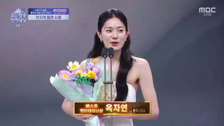 29일 오후 8시 50분 서울 마포구 상암동 MBC 미디어센터 공개홀에서 생방송으로 진행된 '2025 MBC 방송연예대상'에서는 배우 옥자연, 이시언이 베스트 엔터테이너상 수상자로 호명됐다.