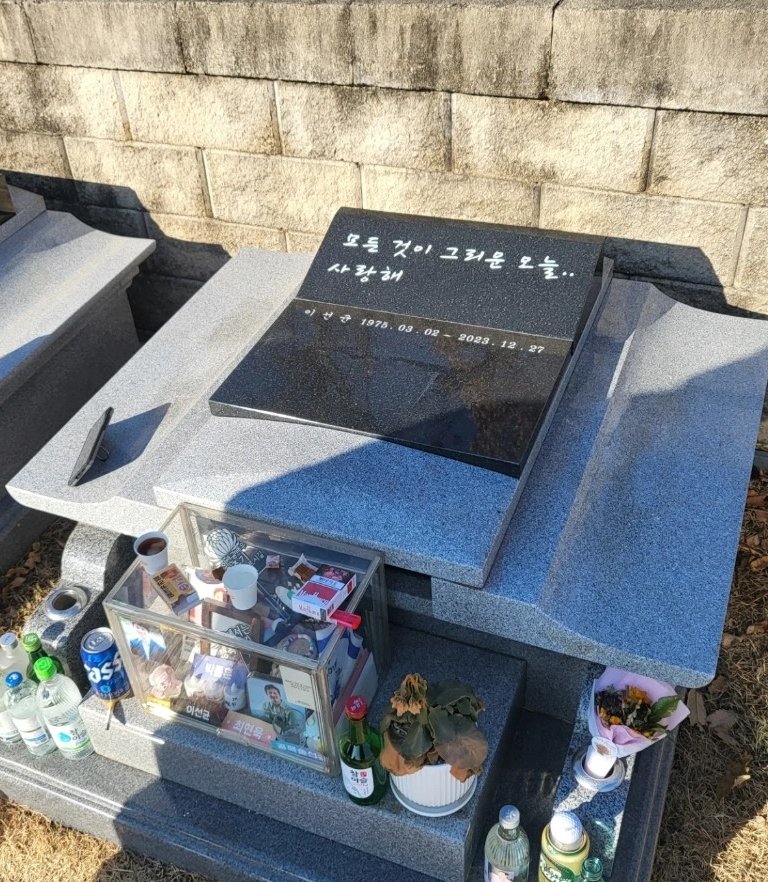 사진에는 이선균의 묘비가 담겼다. 묘비에는 "모든 것이 그리운 오늘, 사랑해"라는 글이 적혀 있어 눈길을 끈다.