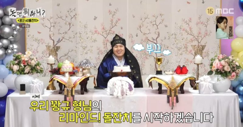 10일 오후 방송된 MBC '놀면 뭐하니?'에서는 김광규를 위한 돌잔치가 준비됐다. 제작진과 멤버들은 김광규의 '60돌'을 축하하기 위해 돌잔치 콘셉트의 세팅과 의상까지 준비하며 특별한 시간을 만들었다.