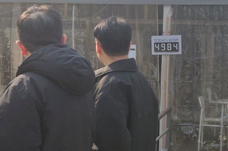 이날 카페 앞 '4984'가 적힌 코스피 지수 표지판도 이목을 끌었다. 횡단보도 신호가 바뀌길 기다리며 카페 외관에 붙은 코스피 지수를 한참 보던 한 시민은 "아무래도 주식을 하면 기분 좋게 커피를 사 먹을 수 있지 않겠나"라고 말했다.