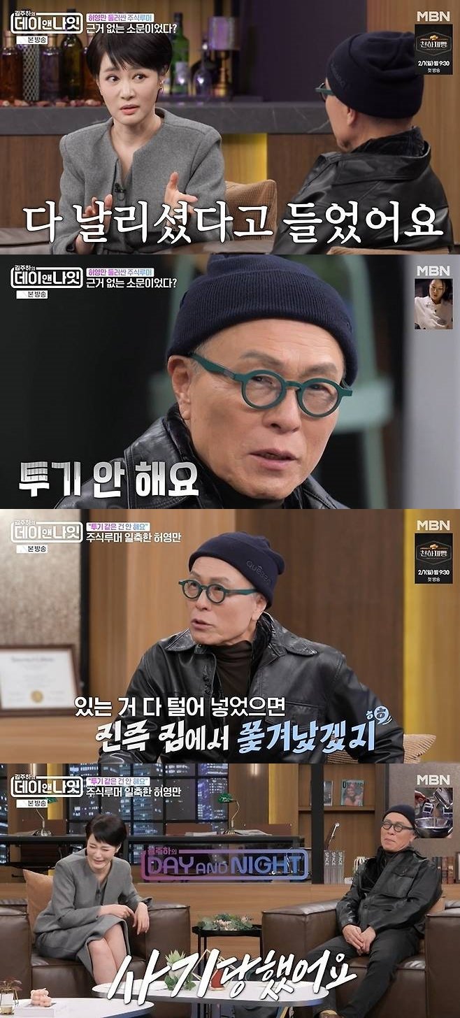 허영만은 지난달 31일 방송한 MBN '김주하의 데이앤나잇'에서 "주식으로 (전 재산을) 다 날렸다는 소문을 들었다"는 질문에 "소문이 이렇게 나는구나"라며 씁쓸해했다. "명절이나 제사 때 모이면 고스톱도 안 친다. 술은 마시지만, 투기는 안 한다"면서 "주식 투자는 태어날 때부터 타이밍을 놓치지 않는 사람이 해야 한다. 있는 거 다 털어 넣었으면 진즉에 집에서 쫓겨났을 것"이라고 했다.