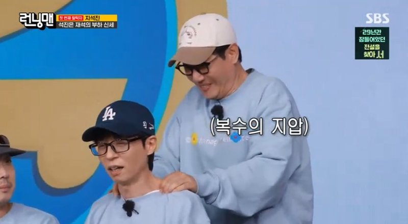 (서울=뉴스1) 황예지 기자 = '런닝맨' 지석진이 '유재석 부하'로 결정되며 역대급 굴욕 장면이 완성됐다.