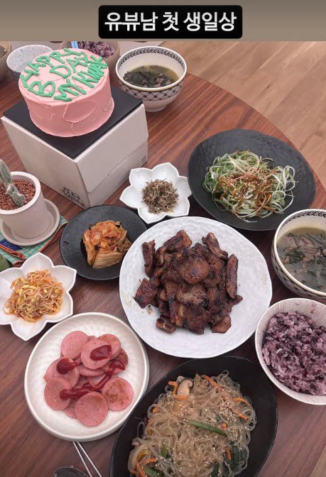 공개된 사진에는 잡채, 미역국, 흑미밥 등 요리가 정성스럽게 준비된 한식 상차림이 담겼다.