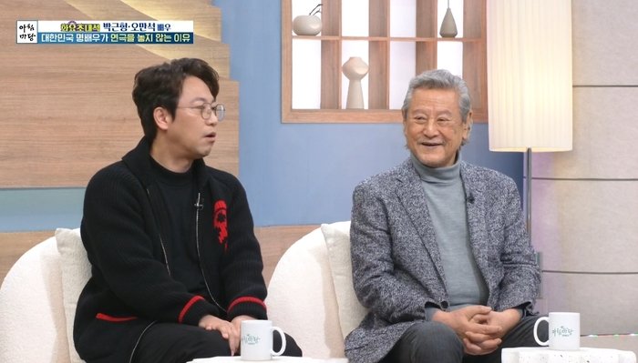 10년 만에 '아침마당'에 출연했다는 박근형은 "지금은 작고하신 윤소정 선생과 '아버지'라는 연극을 할 때 같이 나와서 인사드린 적 있다"고 인연을 밝혔다. 그러면서 "그전에는 이금희 씨와 이상벽 씨, 저 어렸을 때 나왔다"라고 덧붙였다.