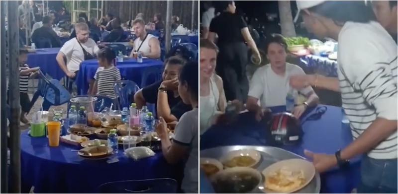 두 사람은 나콘시탐마랏의 인기 야시장 근처에 화려한 천막으로 치장한 곳에 음식이 풍성하게 준비돼 있는 걸 보고 식당이라 착각한 것으로 알려졌다.