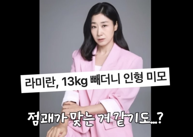 앞서 라미란은 지난해 9월 유튜브 채널 '짠한형 신동엽'에 출연해 필라테스와 식단 관리를 통해 "몸무게만으로는 13㎏을 뺐다"고 밝힌 바 있다.
