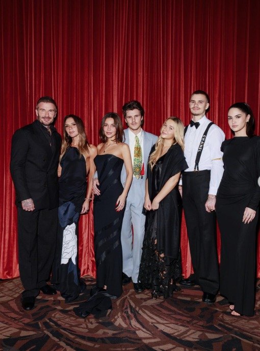 사진에는 데이비드 베컴 부부와 삼남 크루즈 베컴, 차남 로미오 베컴, 막내딸 하퍼 베컴 및 아들들의 여자친구들이 담겼다. 화려한 드레스와 슈트를 입고 '셀럽 가족' 다운 스타일을 완성해 눈길을 끈다.