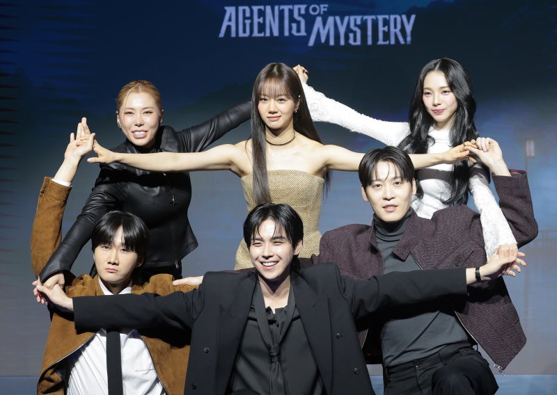 지난 19일 서울 마포구 호텔 나루 서울 엠갤러리에서 넷플릭스 예능 프로그램 '미스터리 수사단2' 제작발표회가 열려 이용진, 존박, 혜리, 김도훈, 카리나, 가비가 참석했다.