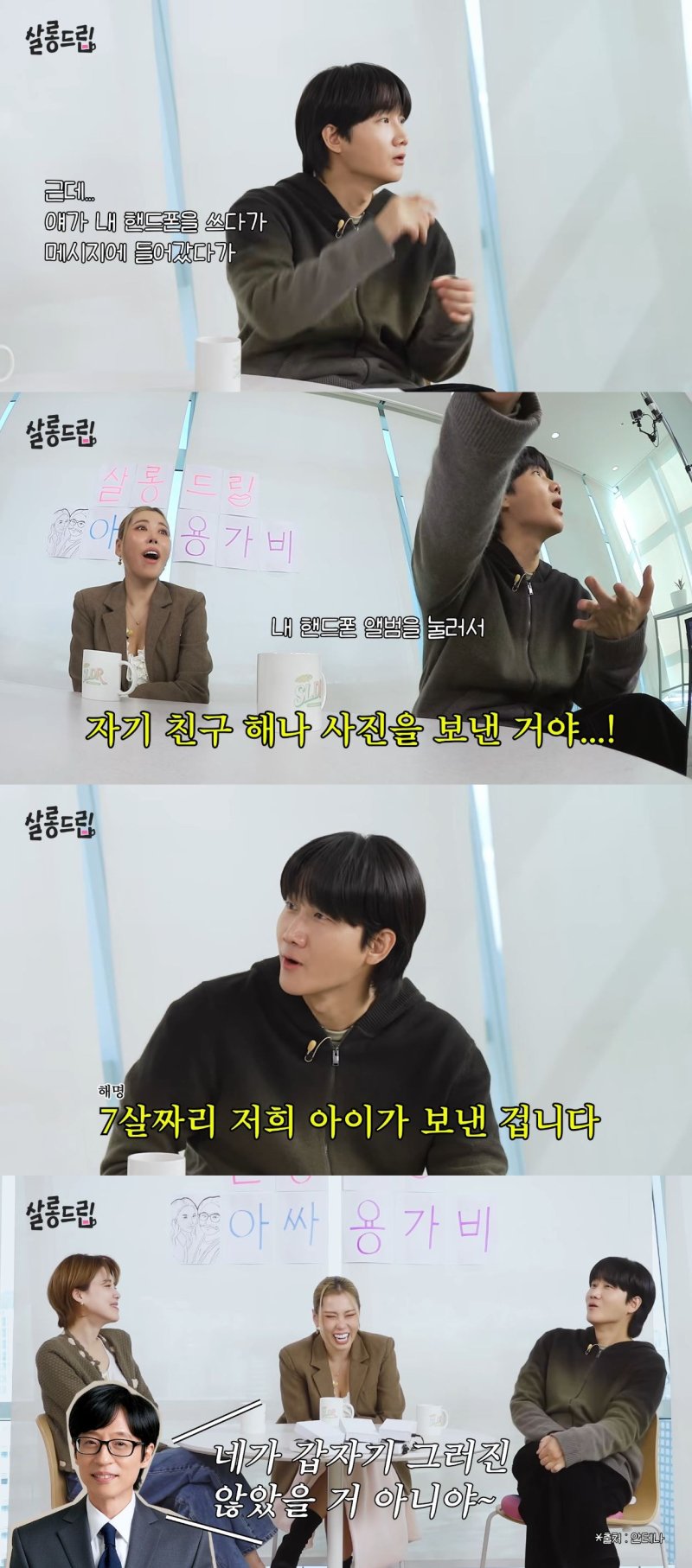 그는 "아들이 내 휴대전화를 쓰다가 메시지로 자기 친구 사진을 재석 선배님한테 보냈다"고 덧붙였다.
