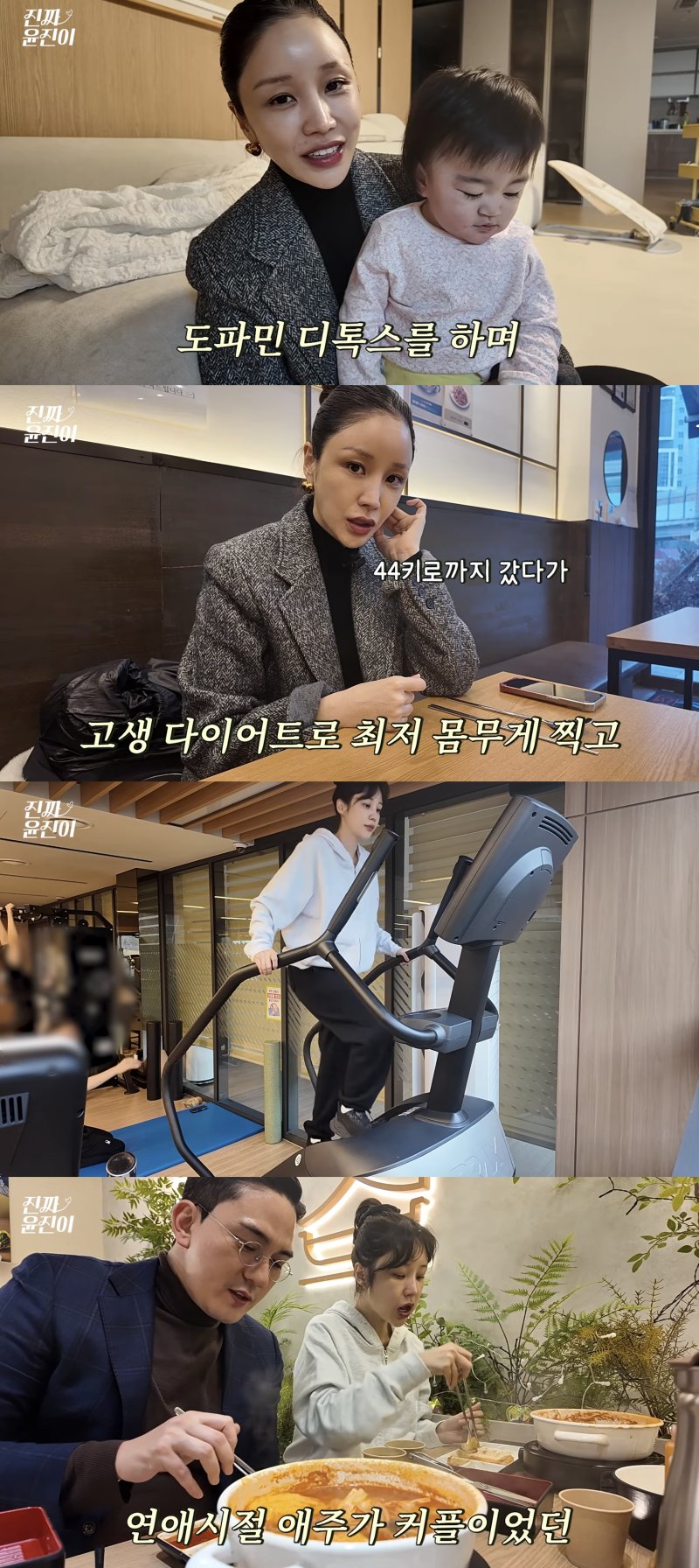윤진이는 "재정비하는 시간 동안 SNS나 휴대전화를 다 끊고 육아만 했다. 음식도 거의 안 사 먹고 유기농 위주로 집에서 요리했다"고 말했다.