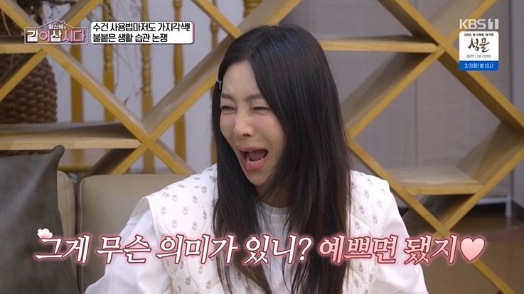 25일 오후 방송된 KBS 1TV 예능 프로그램 '황신혜의 같이 삽시다'에서는 황신혜, 장윤정, 정가은 등 멤버들이 빨래를 주제로 대화를 나눴다.