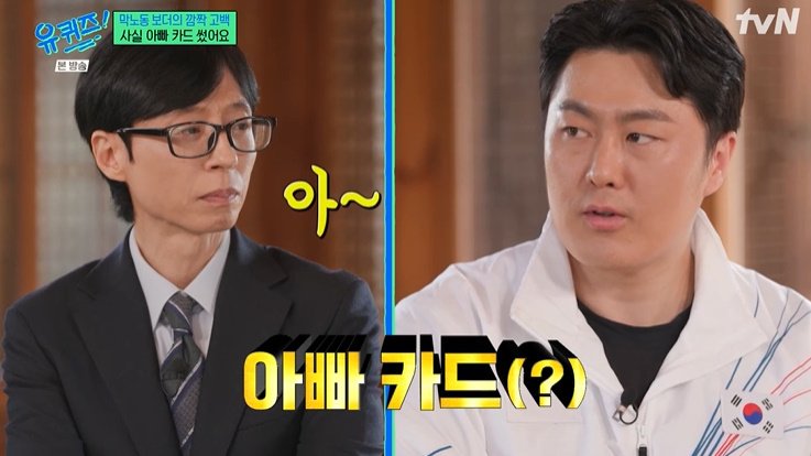 김상겸이 "친구들 만나는 것도 좋아하고, 그렇게 카드를 써서 많이 혼났나 보다"라면서도 "엄마 카드는 안 썼다. '엄마' 하면 좀 뭉클해서 '차라리 아빠를 힘들게 하자' 했다"라고 속내를 털어놔 유재석의 배꼽을 잡게 했다.