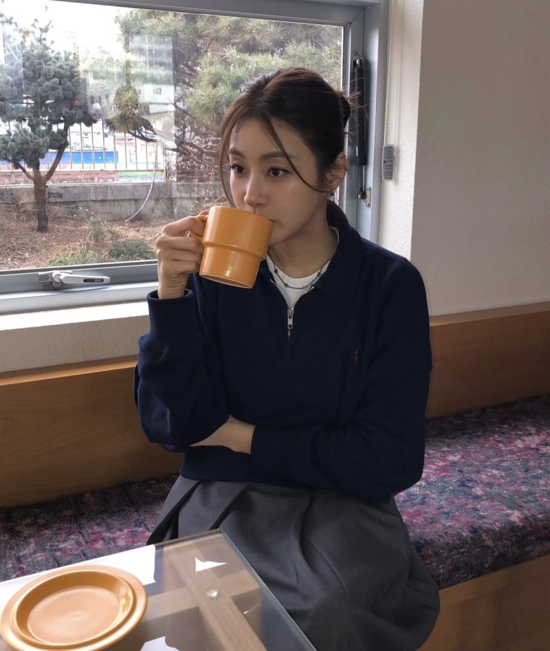 사진 속 강소라는 커피를 마시고 있다.