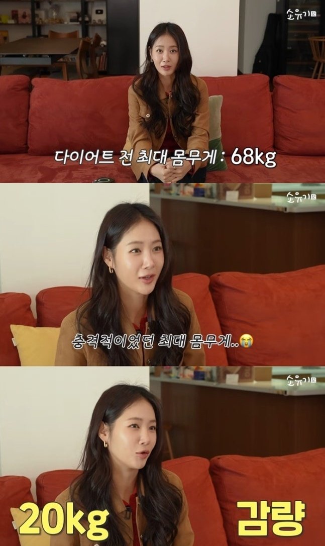 최대 몸무게가 68㎏였다는 것을 말하지 않은 이유에 대해서는 "제 자신이 너무 수치스러웠다. 충격 먹고 폭풍감량을 시작했다"고 했다.
