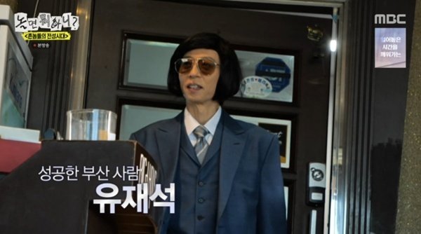 성공한 부산 사람 콘셉트로 가장 먼저 등장한 유재석이 "왔나?"라며 어설픈 경상도 사투리로 하하, 주우재, 허경환을 맞이했다. 출처를 알 수 없는 유재석의 사투리에 경상도 출신의 주우재와 허경환이 "못 들어 주겠다"라고 입을 모으며 웃음을 터뜨렸다. 주우재는 "대답도 하기 싫은 사투리"라고 너스레를 떨며 질색하기도.