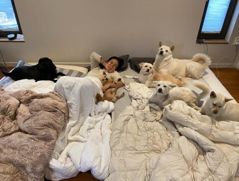 공개한 사진에는 이효리가 여러 반려견, 반려묘에 둘러싸여 편하게 누워 있는 모습이 담겼다. 이들 속에서 편안하게 휴식을 취하고 있는 이효리의 모습들이 담겨 훈훈함을 자아냈다.