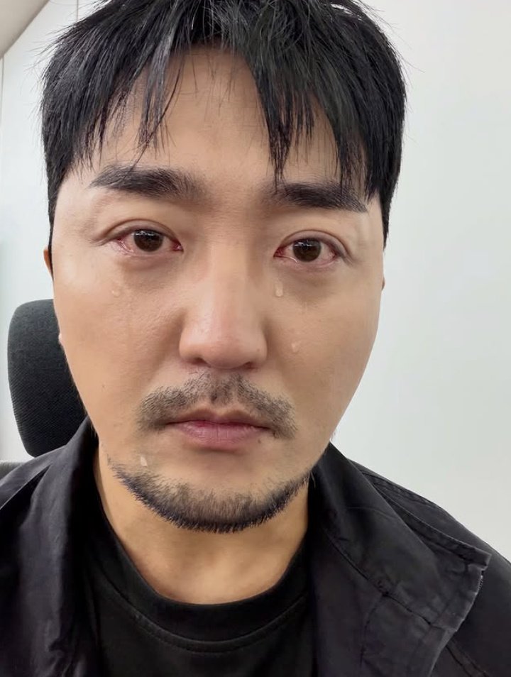 사진 속 유병재는 눈물을 뚝뚝 흘리고 있는 모습이다. 회의적인 글의 내용과는 상반된 모습이 웃음을 자아낸다.