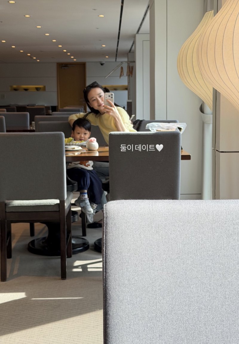 [서울=뉴시스]신지아 인턴 기자 = 전 리듬체조 선수 손연재가 아들과 데이트를 즐겼다.